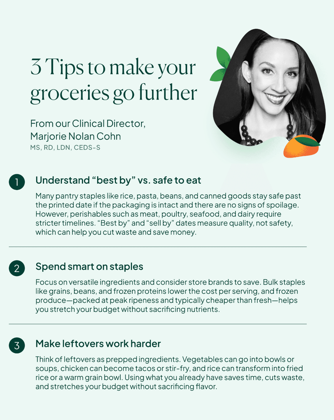 "We want our clients to feel supported—not shamed—when it comes to budgeting," adds Bridget Isaacs. "There are always ways to eat well without breaking the bank."