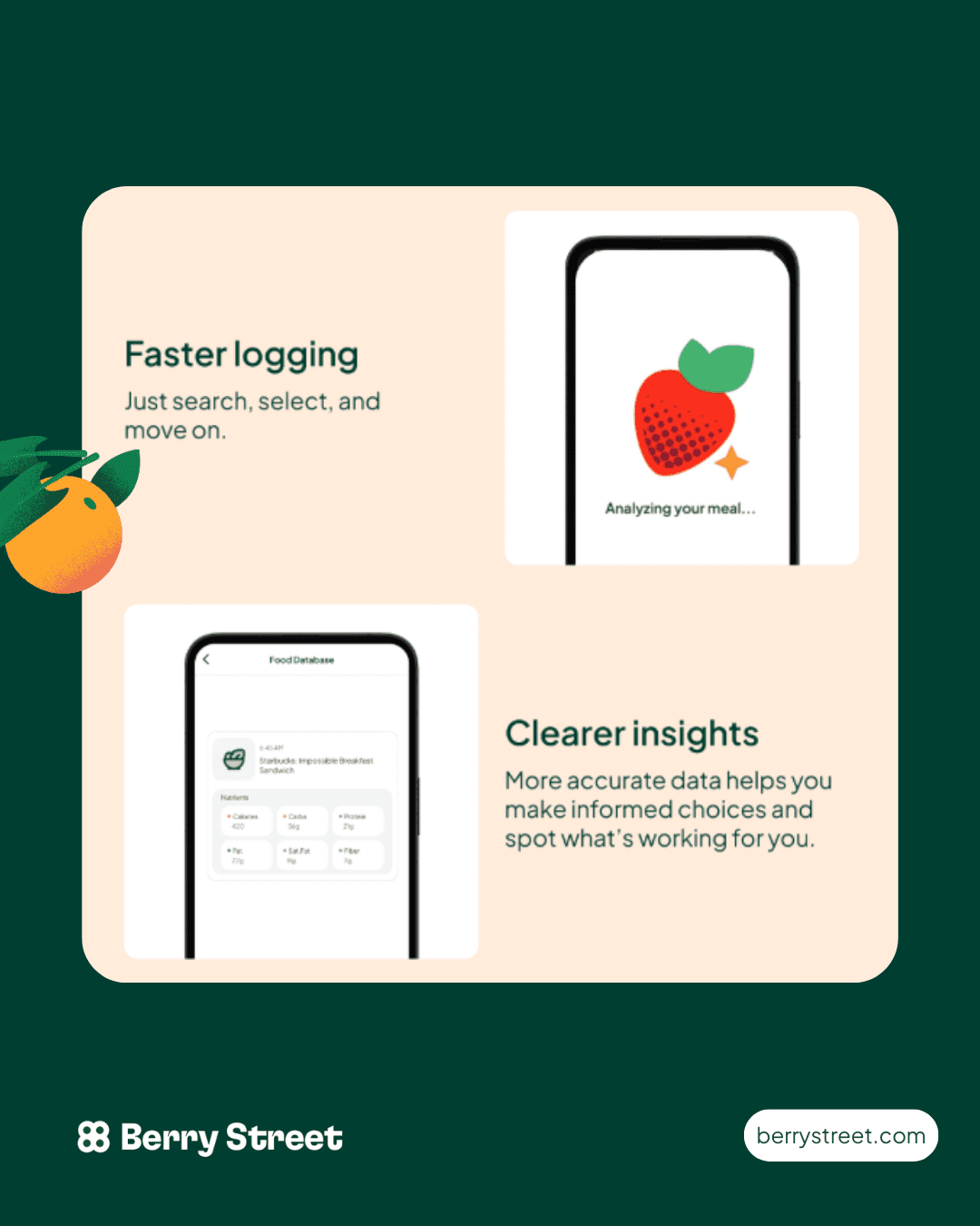 The Berry Street app now includes features to help with meal tracking and budgeting: